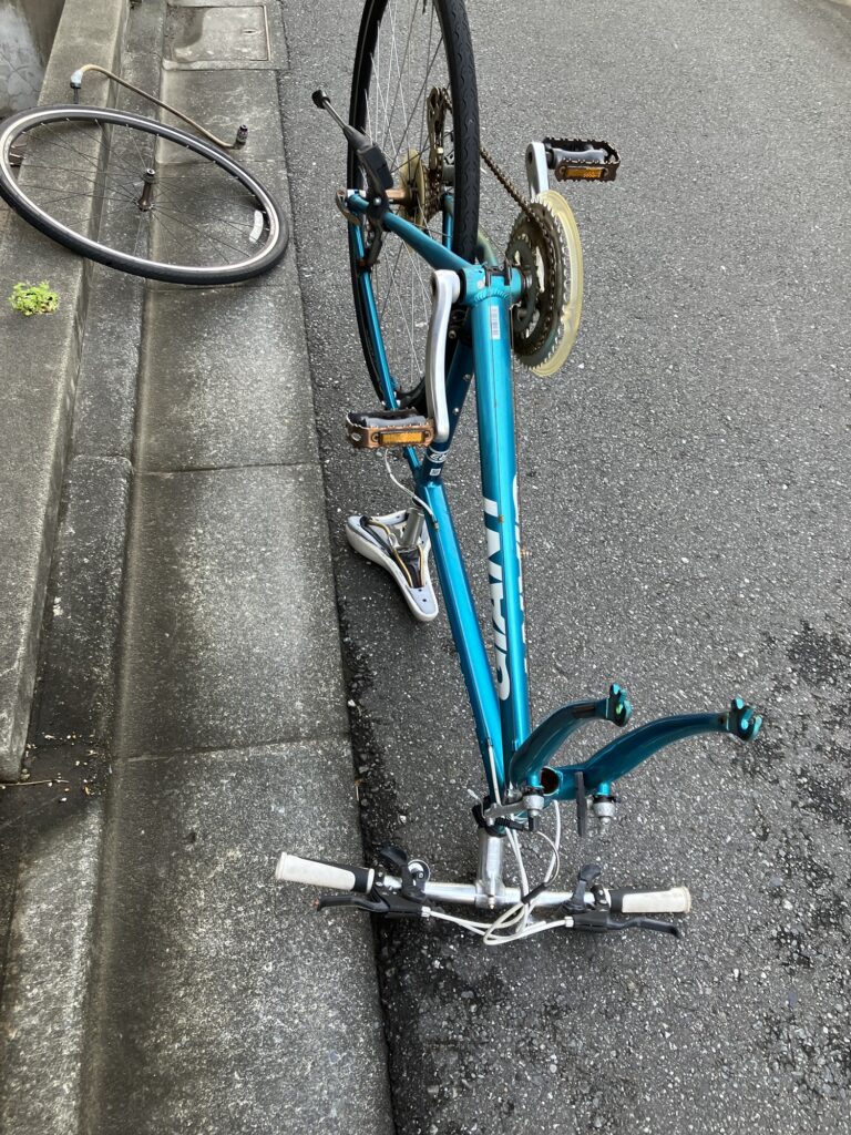 折りたたみ自転車の輪行はよくやるが、クロスバイクで車輪外しての輪行は初めて。