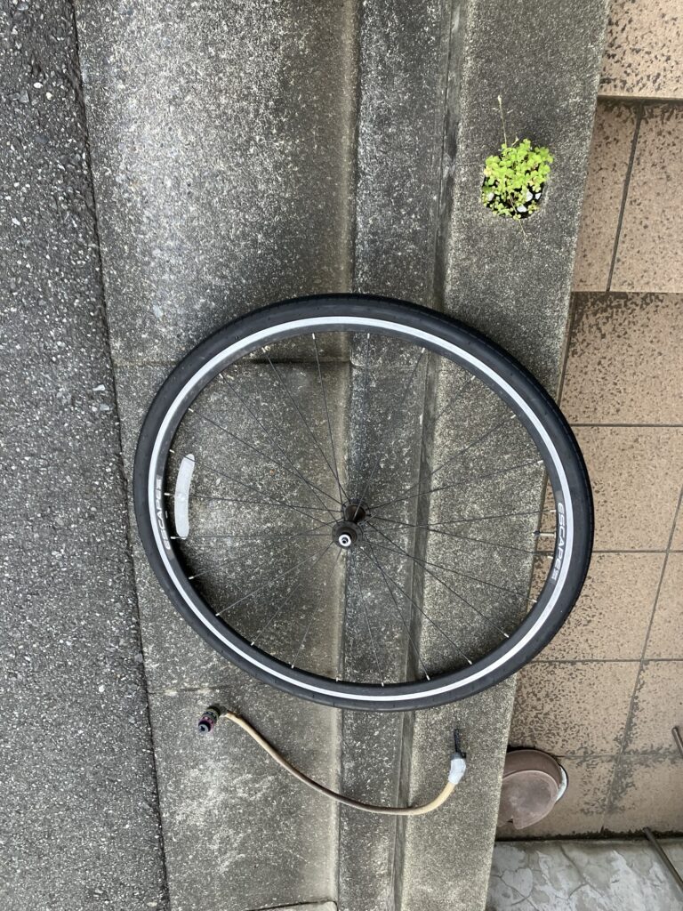 手前が前輪。実際には大きな袋に前輪を小さな袋に入れたまま収納。
