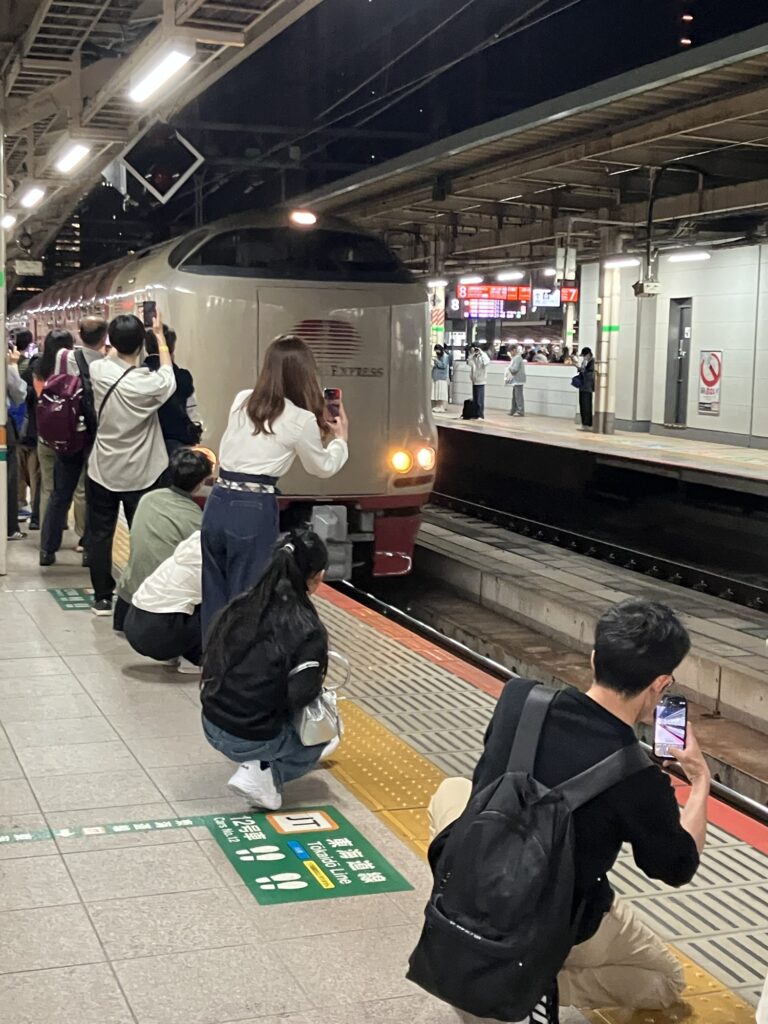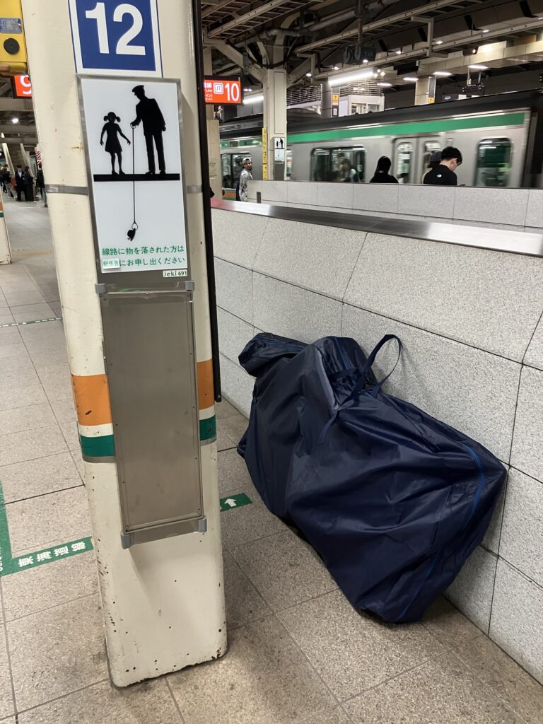 東京駅ホーム階段脇に置いて、サンライズ出雲瀬戸を待つ。