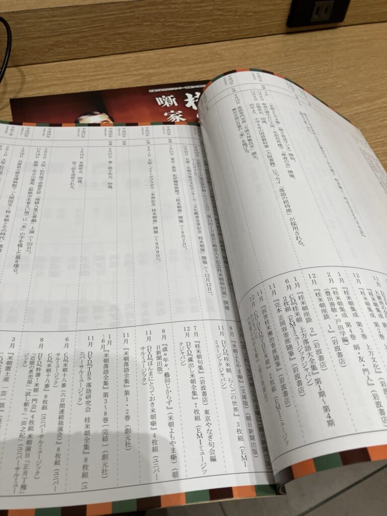 年表と尼崎での落語会の演者演目リストが掲載された無料にしてはかなりしっかりしたカタログでした。
