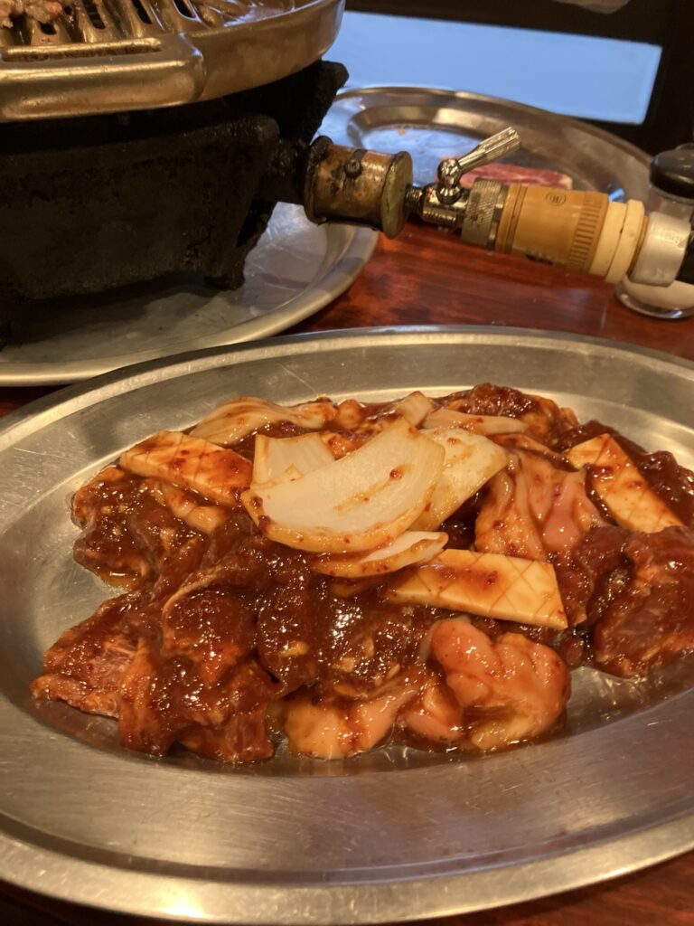 近鉄線路下の渋いホルモン焼き屋に入る。