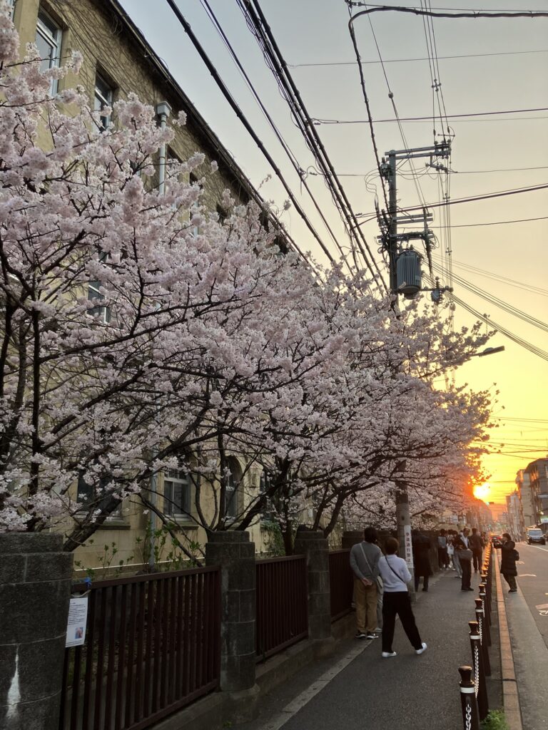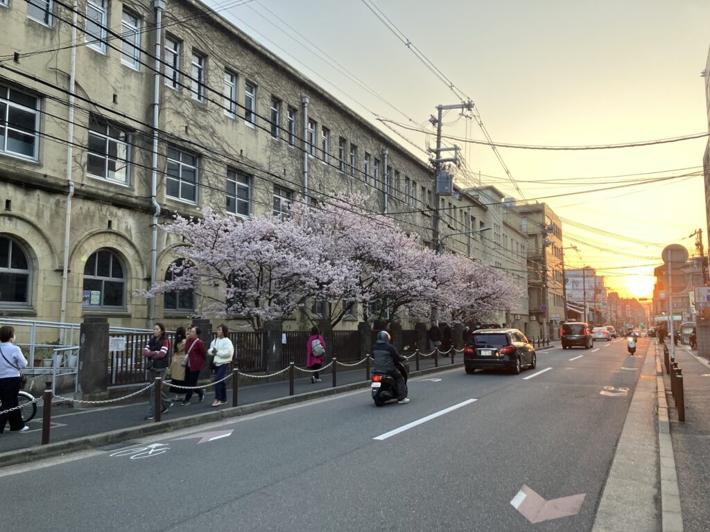銭湯近場の旧中学校は早咲きの桜が咲いていた。