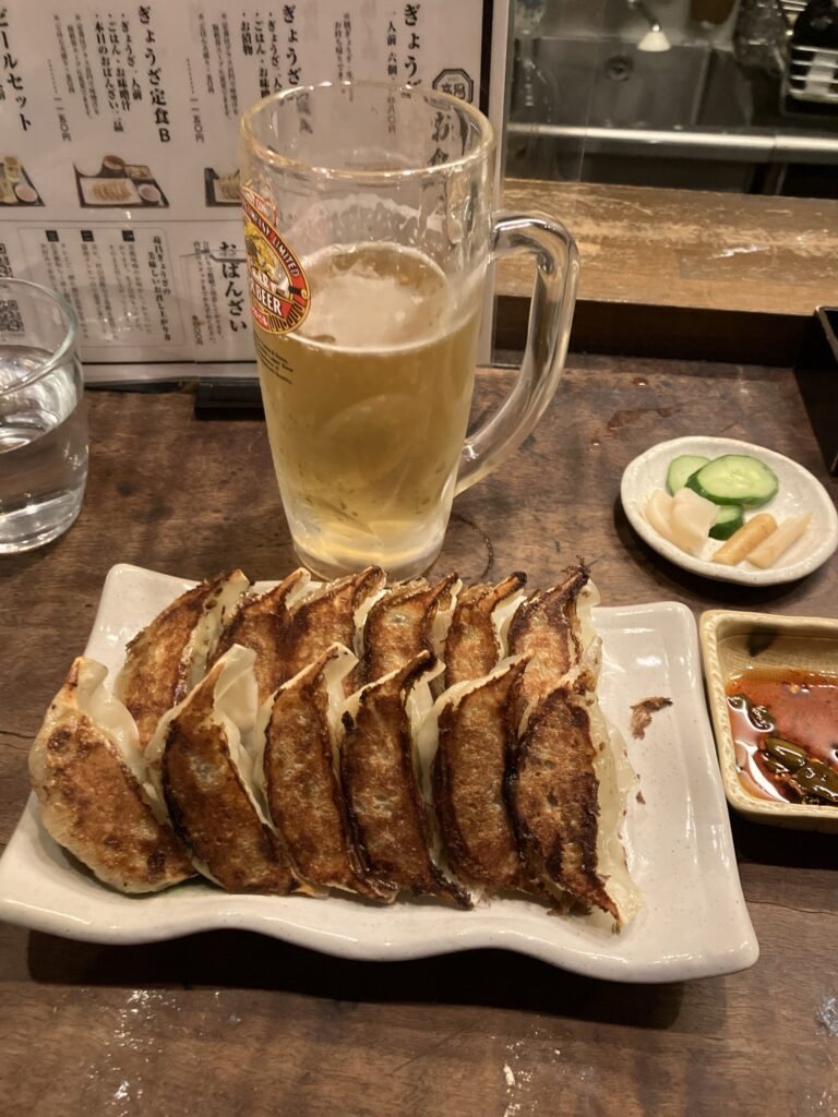 ビールセットを頼んだが、餃子2人前でお腹いっぱい。