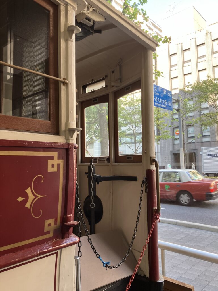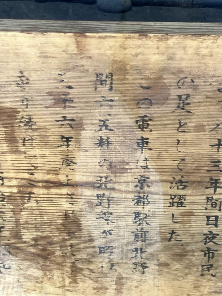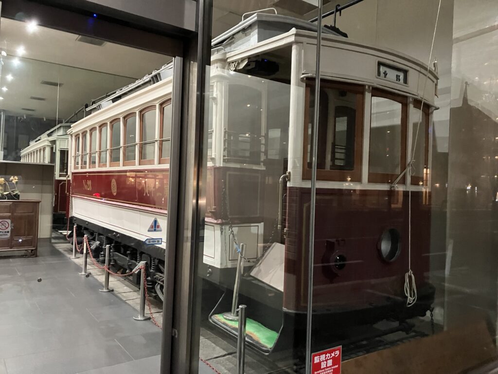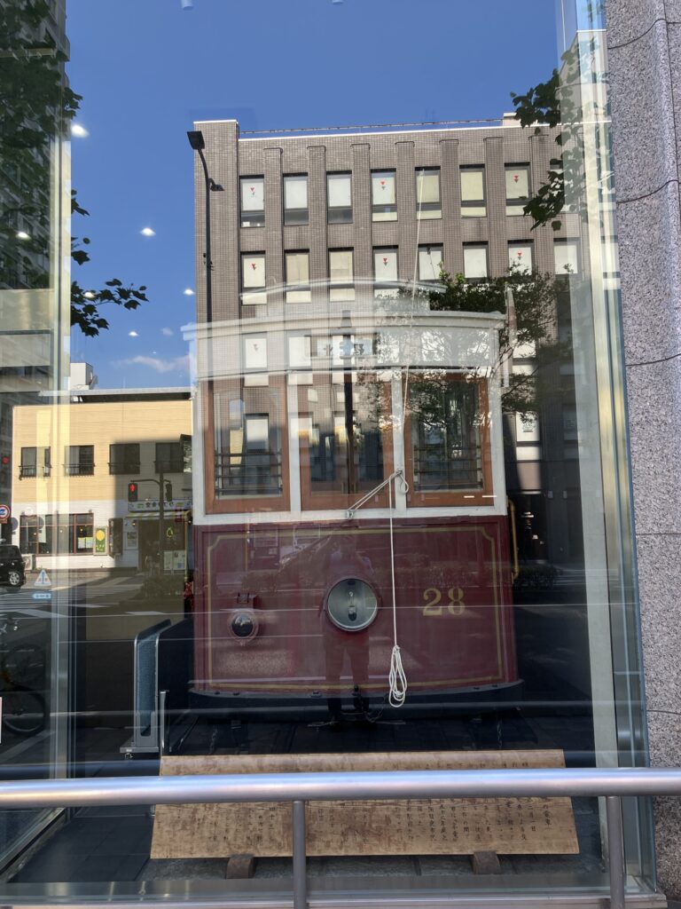 烏丸通のビルの中に京都市電がいた。開いている時に入って見たい。