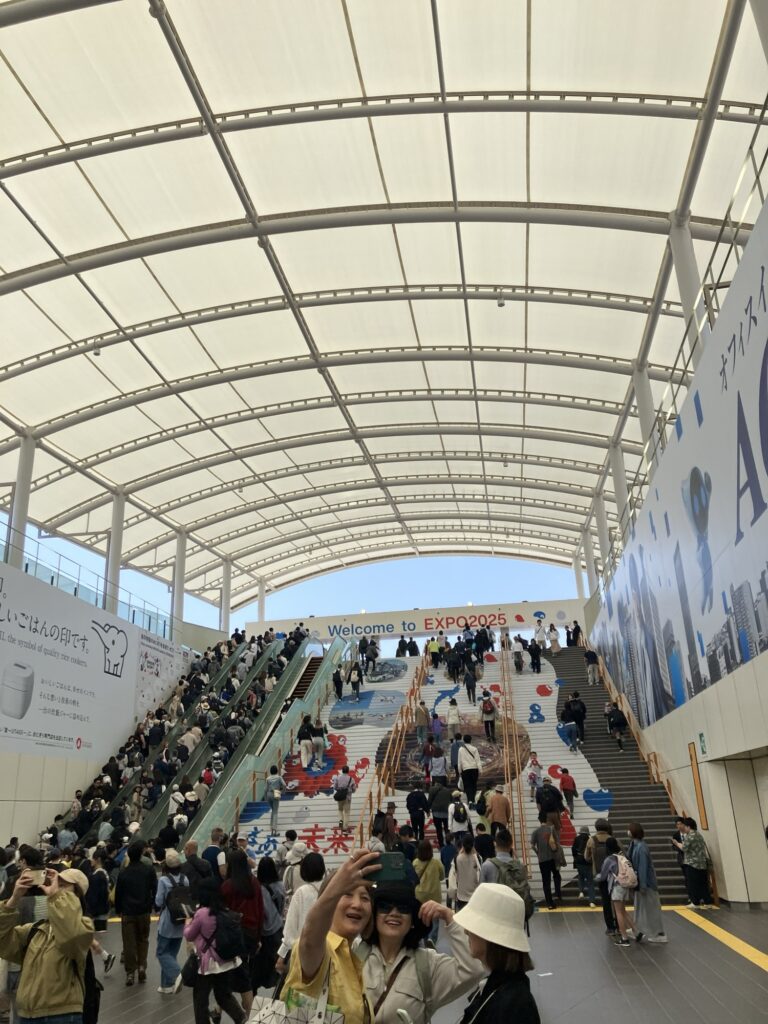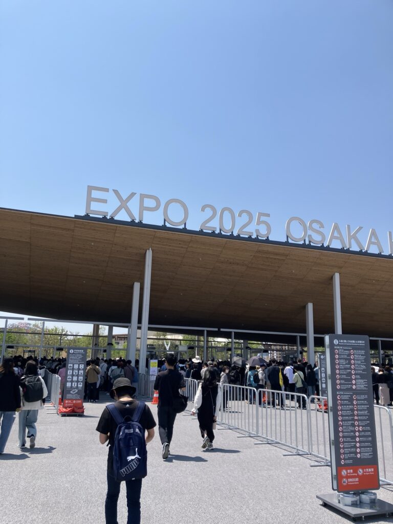 大阪・関西万博の入り口。特に大きな混乱はなかった。携帯電波も携帯各社の電波カーが近くに停まっていて、電波普通に繋がった。
