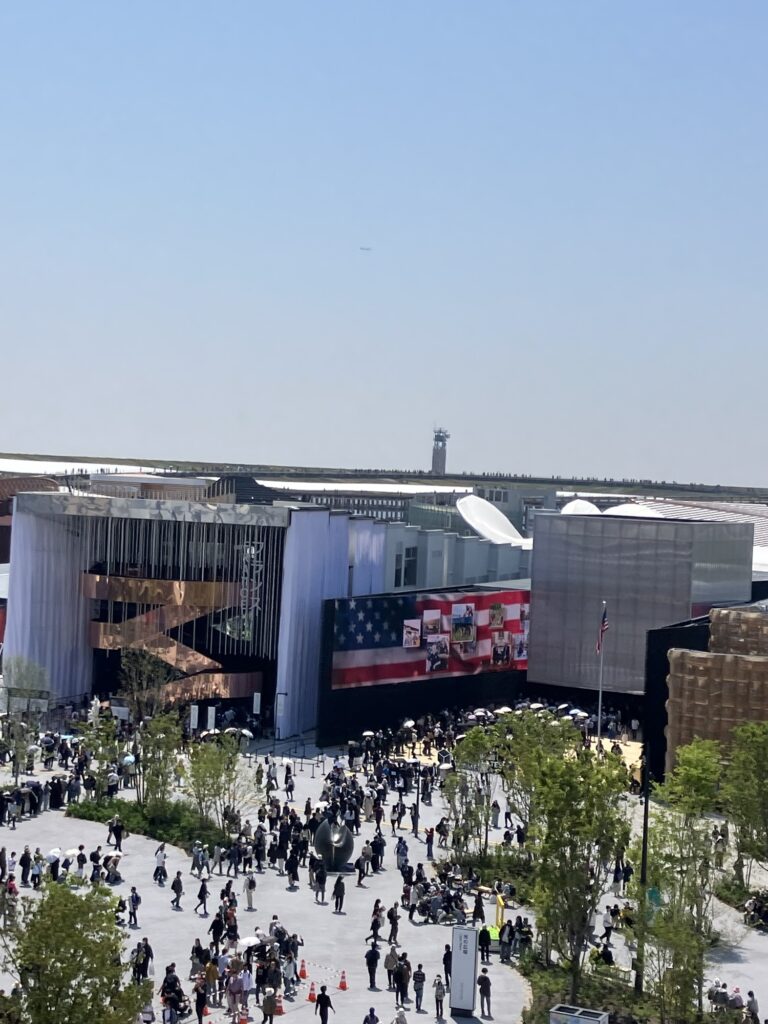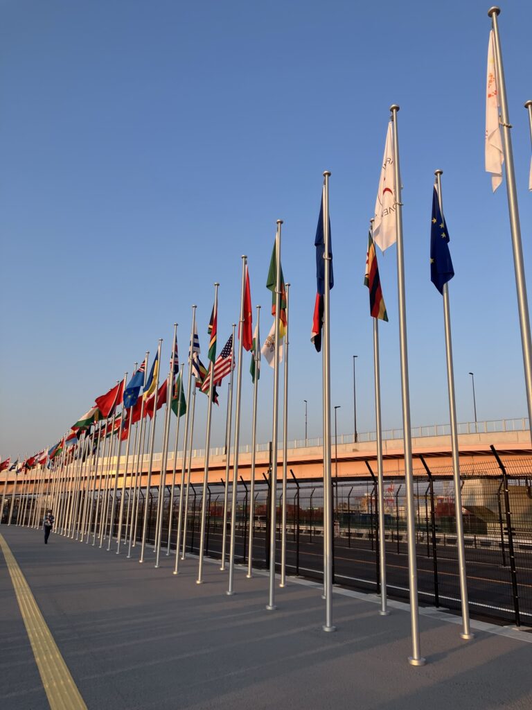 万博らしく各国の国旗が並ぶ出口を見ながら夕方には会場を後にした。