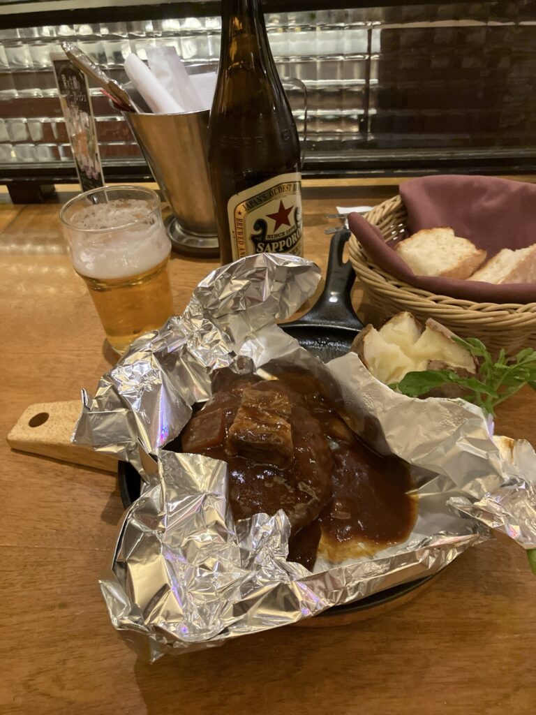このハンバーグは名物だけあって美味しかった。パンもおかわり自由で、これで2000円程度は安いと思う。