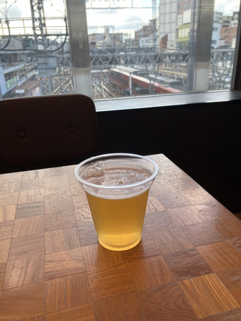 大和西大寺駅構内の電車の眺められるスペースでビール飲みながら休憩。