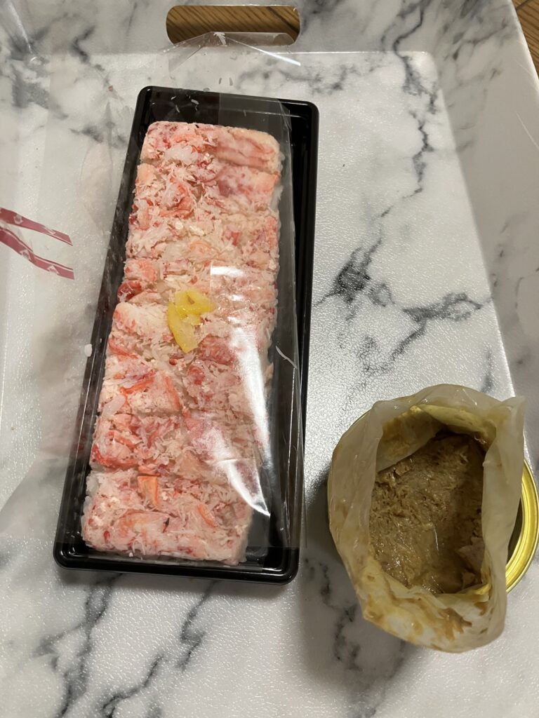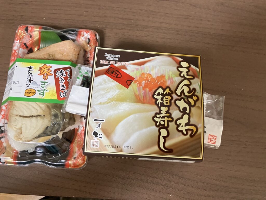 開封した写真を撮る撮り忘れ。えんがわ箱寿しだけだと足らないかと思い左の炙りますも買ったが、えんがわ箱寿しだけでお腹結構膨れた。