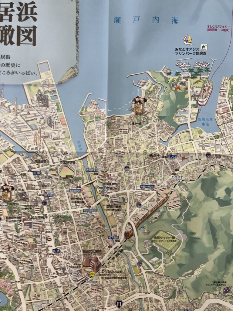 右上にオレンジフェリーが描かれているがこちらは神戸発の深夜フェリー。