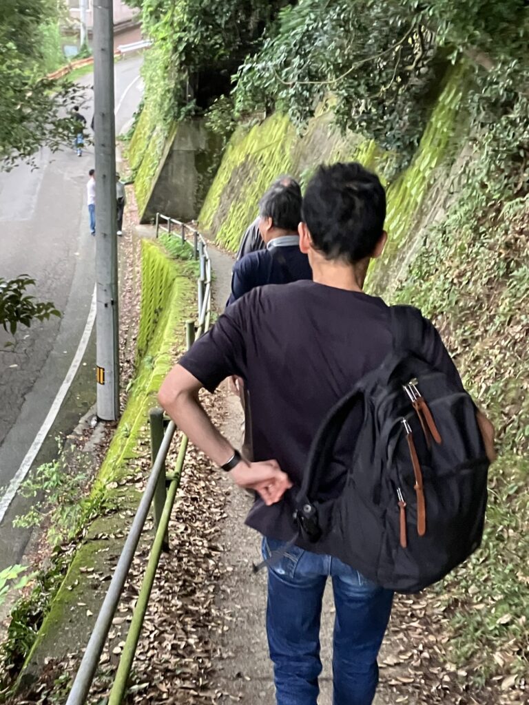 駐車場から細い道を降りていく。