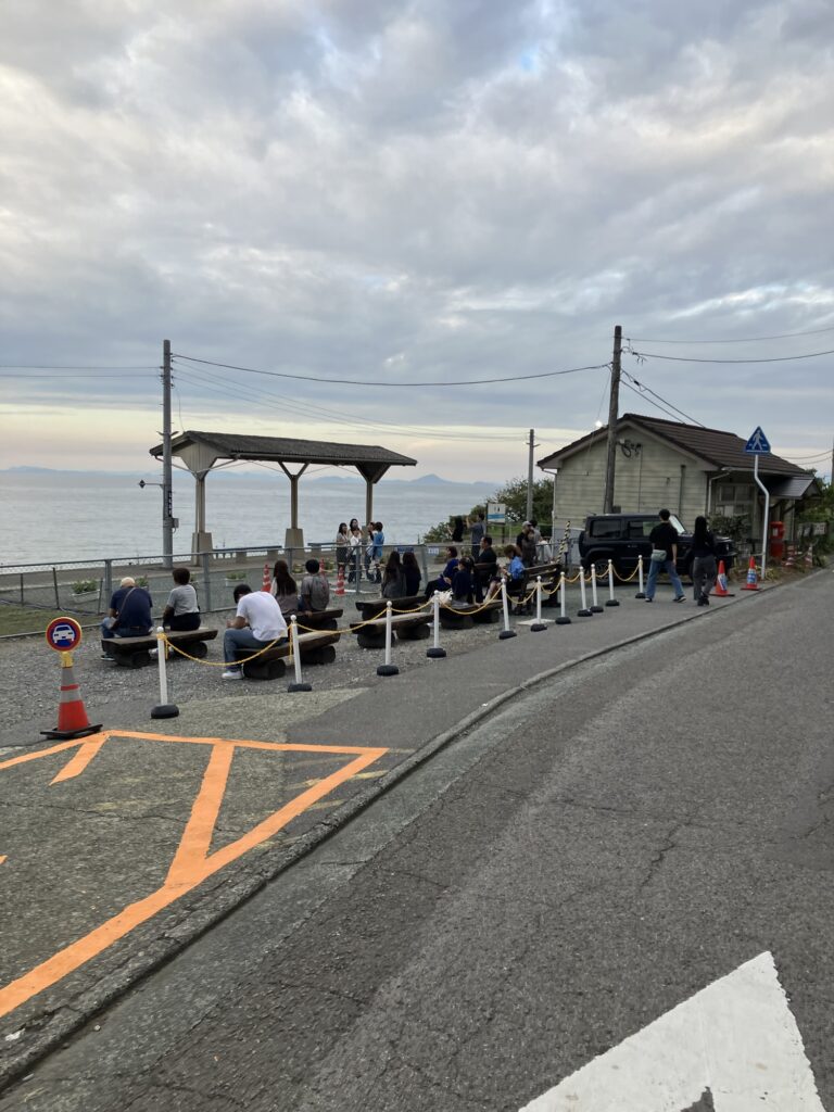 駅員さんに事前に言われ、一直線に並ぶ観光客。駅員さんいるのだし、入場券販売して、入場有料にすれば良いのにと思わないこともない