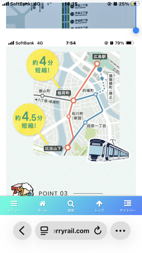 SEA SPICAの船旅を終えて広島電鉄の路面電車乗車。