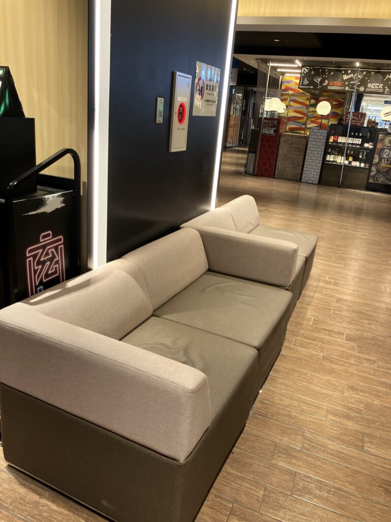 こちらの駅出口付近の芝生椅子も、寒くなければ快適そう。