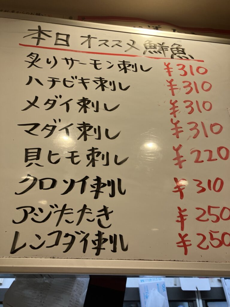 刺身系が充実しているのが、やはりお気に入りの焼鳥日高との違い。どちらも好きだけど。