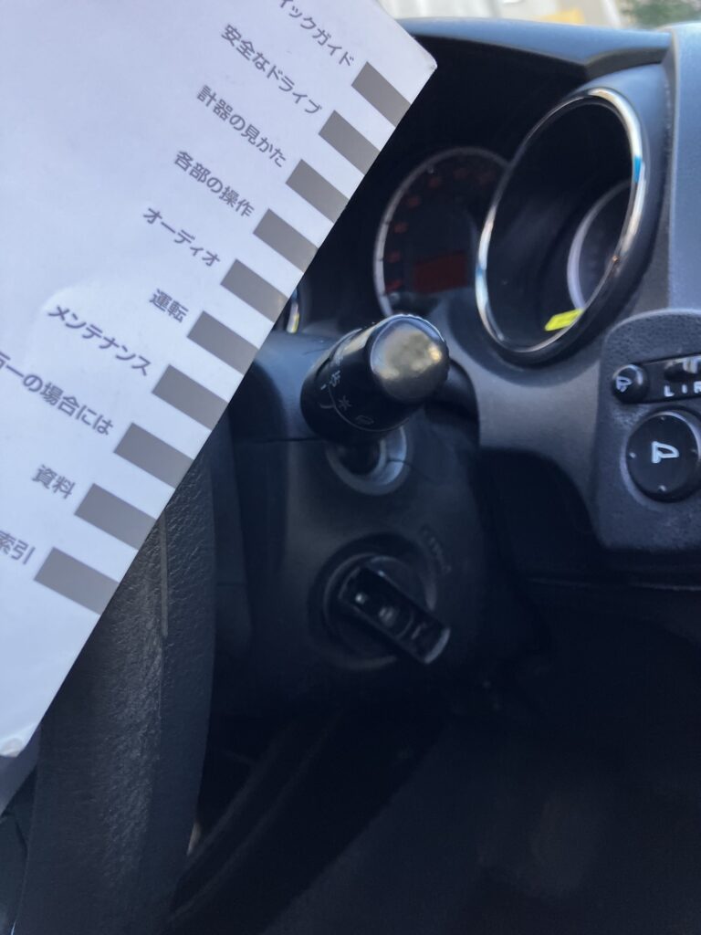 かみさんに頼まれレンタカーを借りるが、スタートボタン(キー)の場所がわからず、取説を読んでようやく判明。