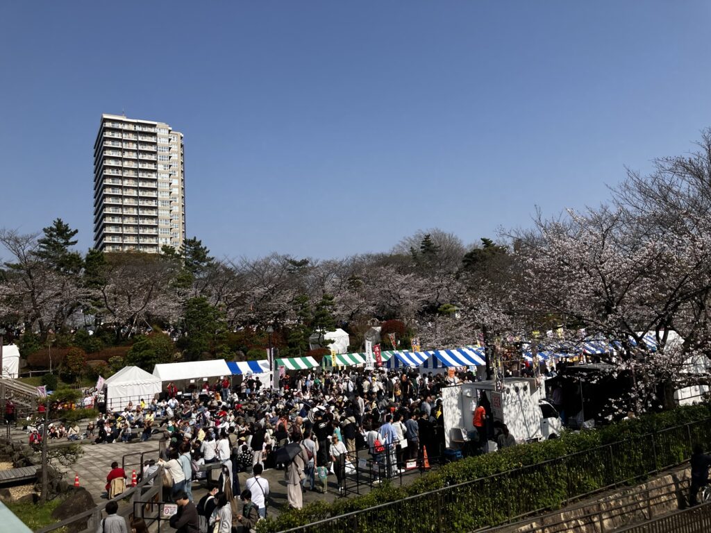 桜の名所の飛鳥山公園は出店が出ている