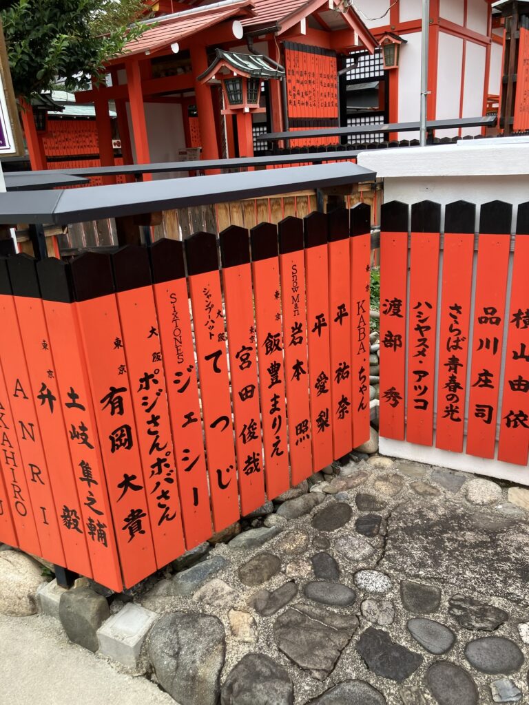 芸能の神社としても有名で、かみさんの目当ては好みの芸能人の名前を探すことか
