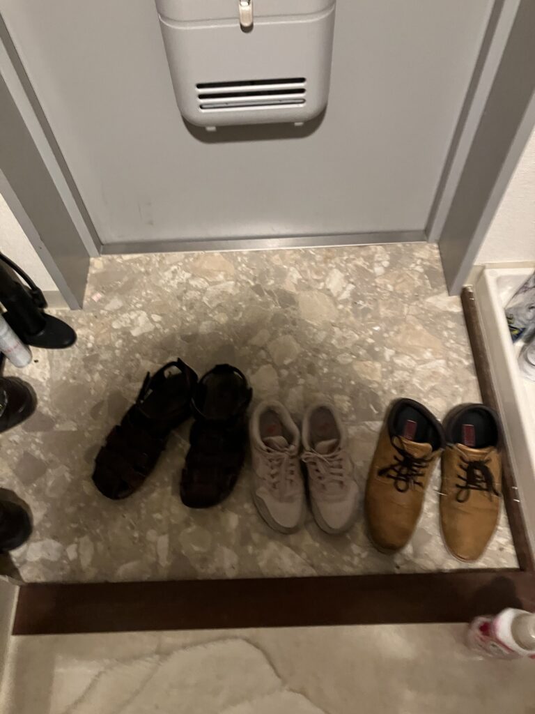 単身赴任先のこの家に靴が3人分並ぶのは初めて。家族と一緒の嬉しい時間。