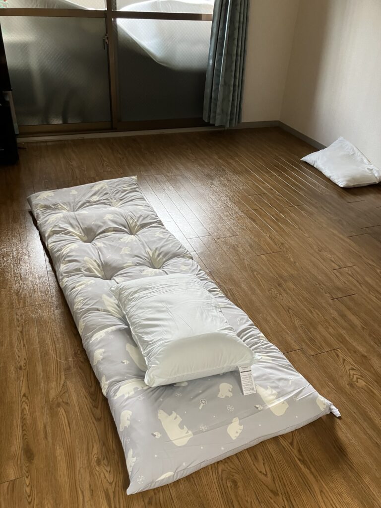 次の週末に、かみさんと下の子が来ることになり、洗える長座布団を買い、布団をほす。