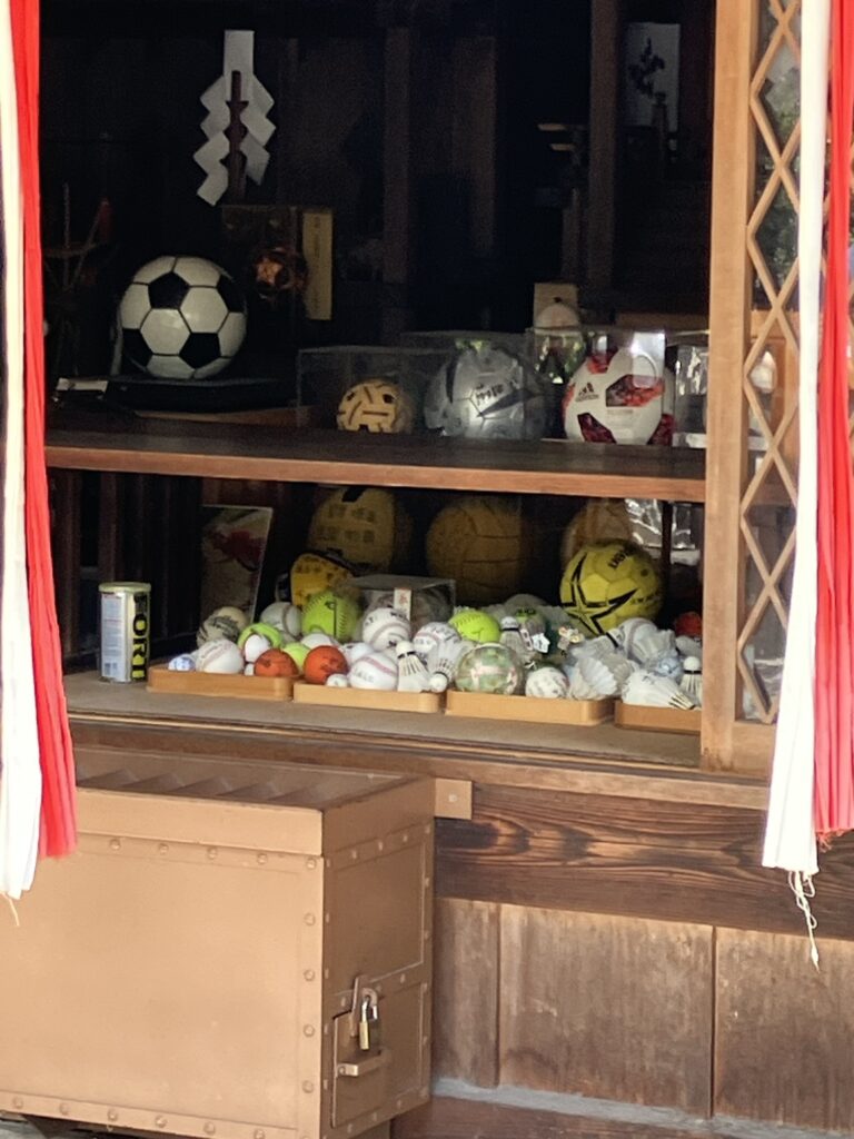 蹴鞠→球技の神様らしくボールがいっぱい奉納されていた。