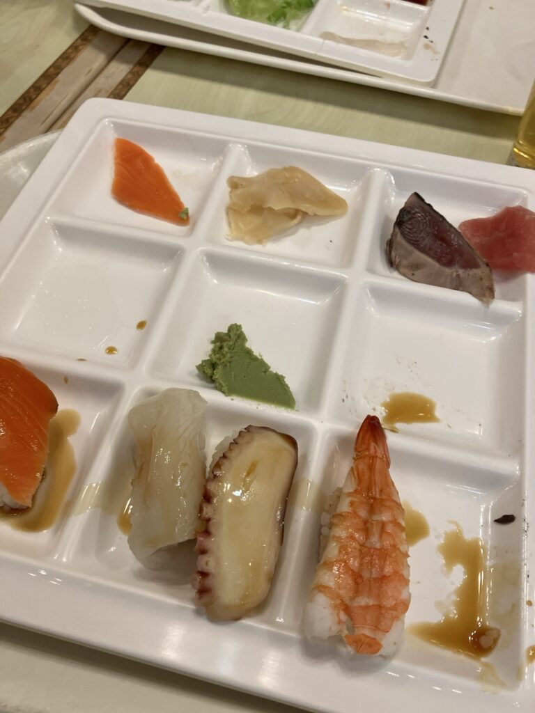 お寿司はネタとシャリが別々にあって自分で載っけて食べる