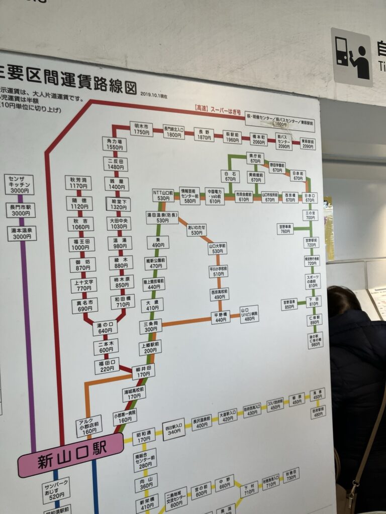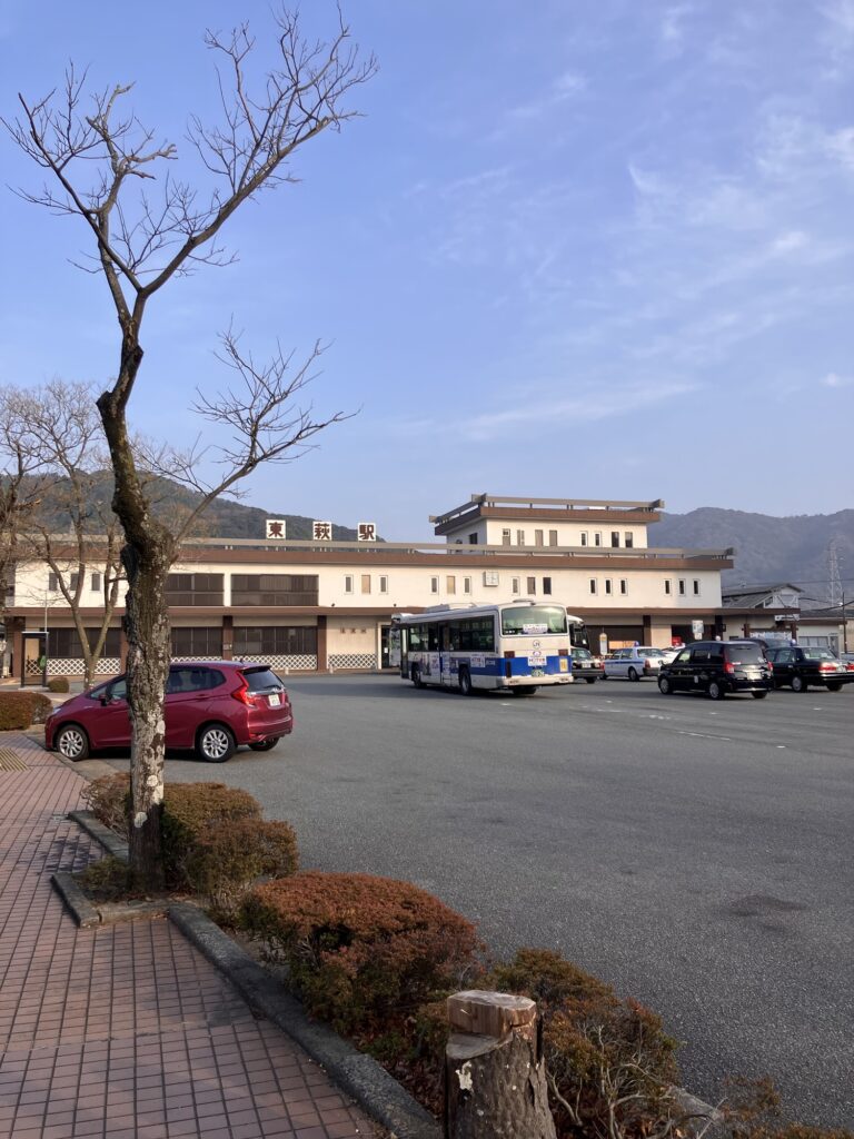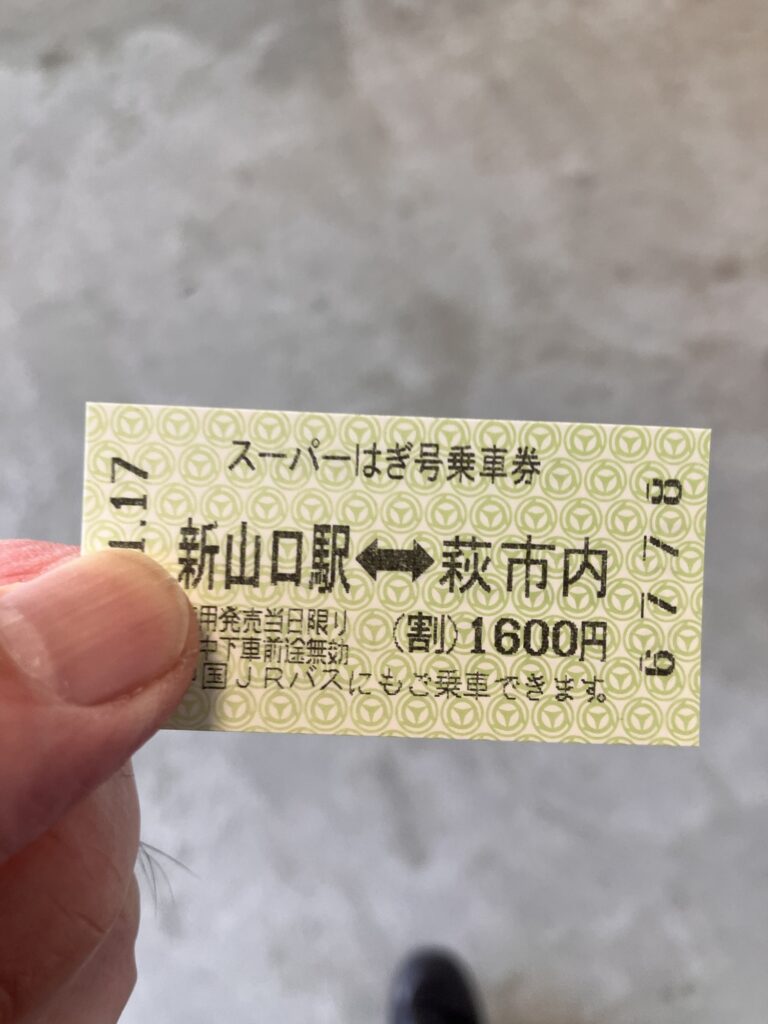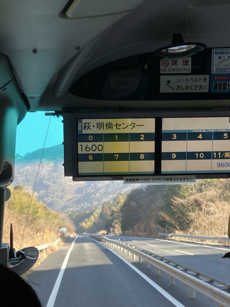 萩駅へは直行のスーパーはぎ号と各バス停に停まる路線バス便がある。早く着くスーパー萩号の方が、萩までの料金が安い不思議な料金設定