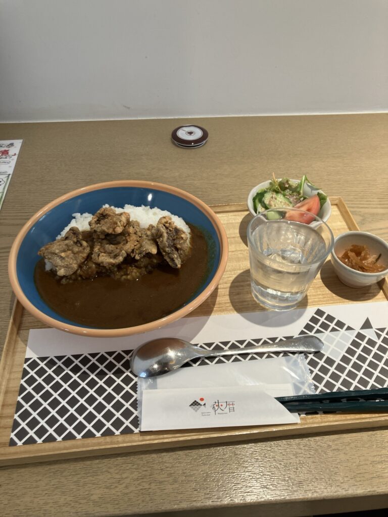 レストランで昔懐かしい鯨の竜田揚げカレーを食べる。鯨の竜田揚げは小学校の給食でよく食べたなあ。