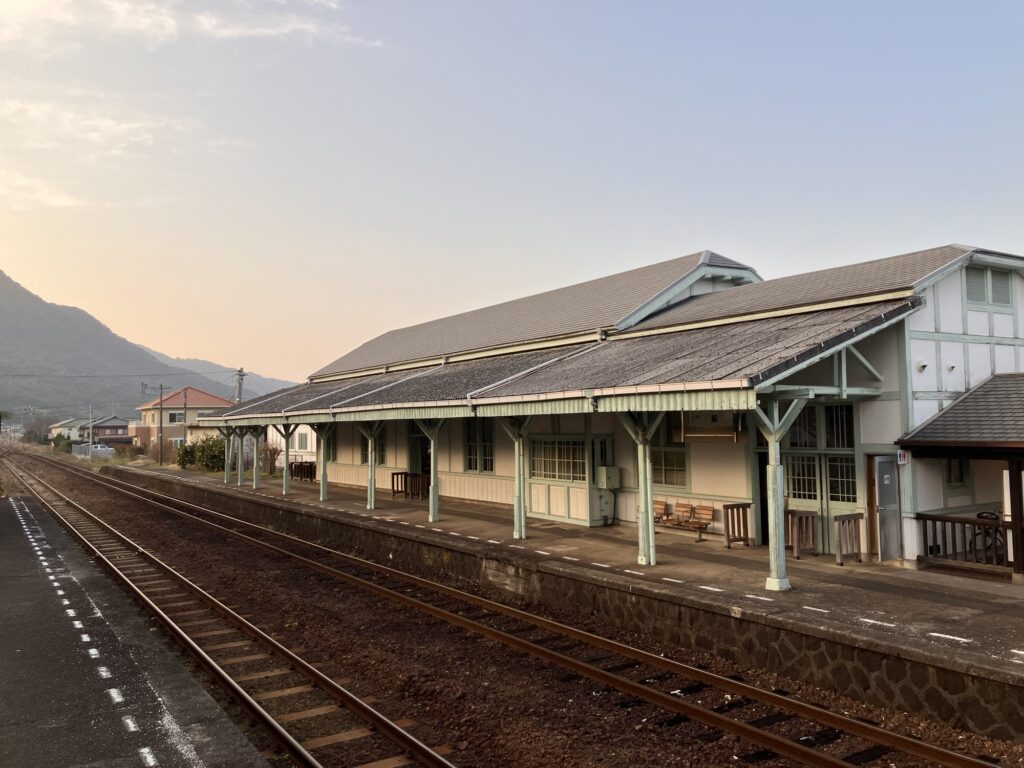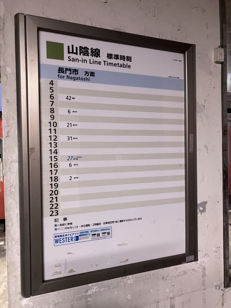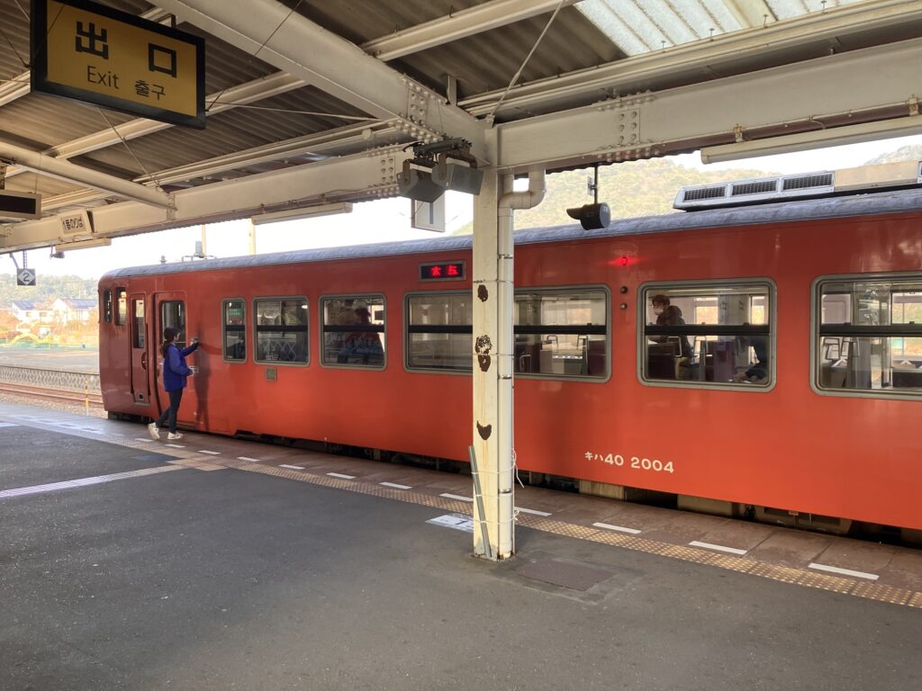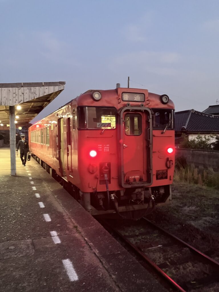 長門市から仙崎支線(山陰本線)に乗り換え仙崎駅へ。18時台が最終列車だった