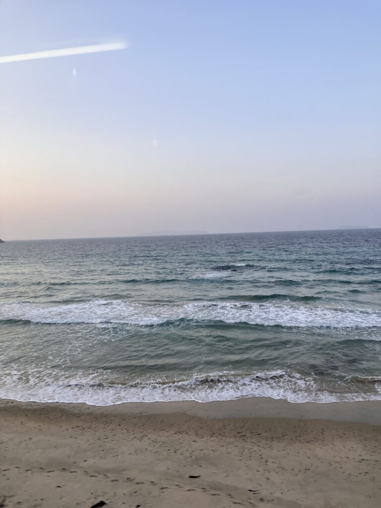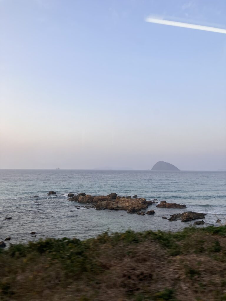 萩から長門市の山陰本線はところどころで海沿いを走り、日本海が眺められた。